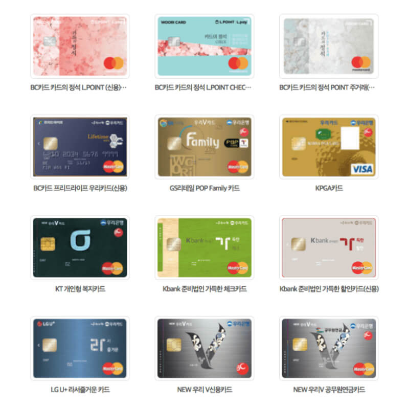 ▶농협 카드 ▶하나 카드 ▶ IBK 기업카드 ▶마스터카드