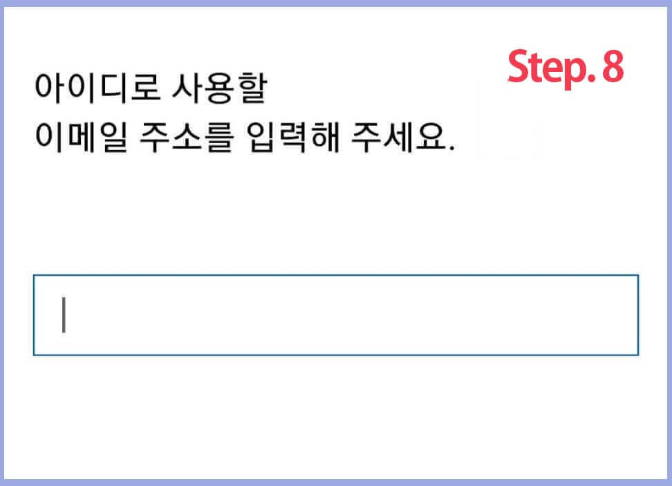 다음 Step 1~9 단계까지 진행하면 회원가입이 완료됩니다. 우선 전체약관에 동의하시고 성명과 주민번호 실명확인 인증번호를 받아 입력하고, 아이디로 사용할 이메일을 입력하고 비밀번호를 등록합니다.