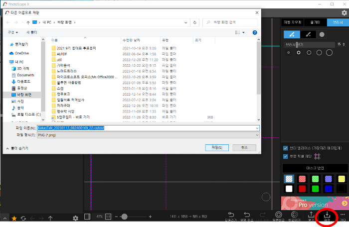 작업이 끝나면 오른쪽 하단에 있는 저장버튼을 눌러 내 pc의 원하는 위치에 저장하세요.
