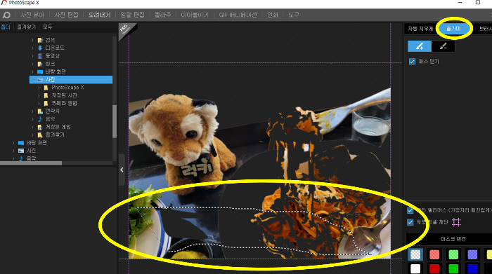 원하는 모양으로 이미지 배경제거하고 싶다면 올가미 기능을 사용하여 그림을 그리듯 공간을 만들어서 배경을 제거할 수도 있습니다.