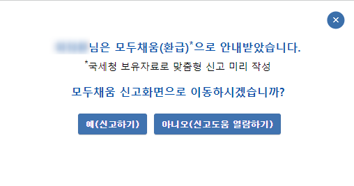 참고로 저는 모두채움 대상자로 미리 안내받아 신고서만 확인하고 수정할 부분만 수정하여 신고를 진행할 계획입니다.